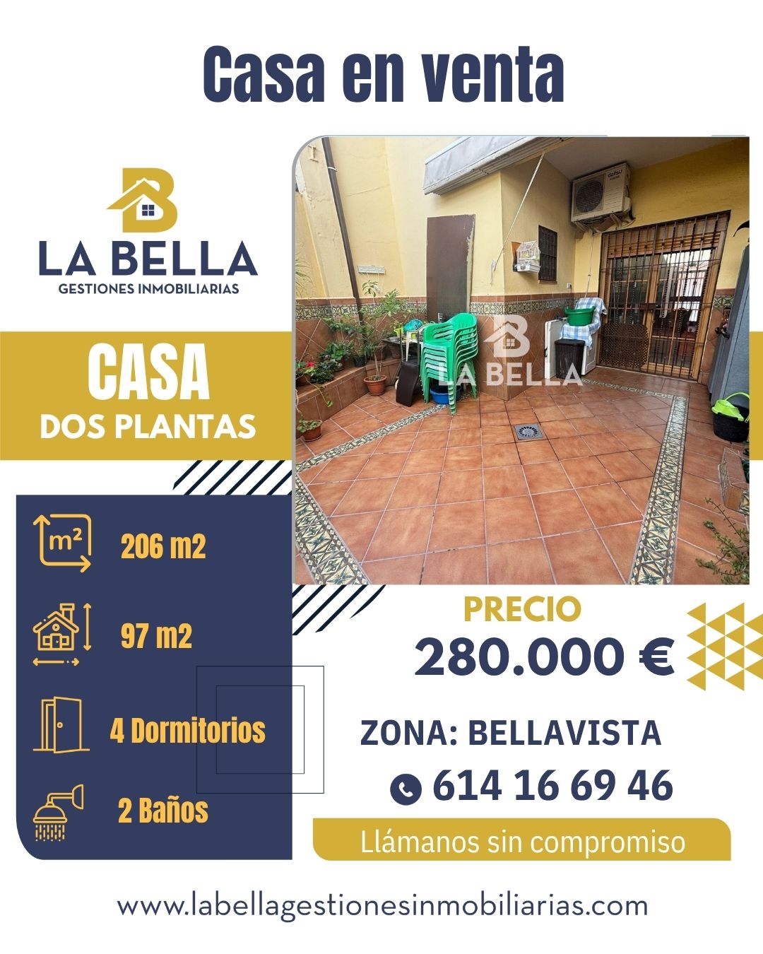 Se vende magnífica casa en el barrio de Bellavista Descubre esta estupenda vivienda de 206 m² construidos, distribuida en dos plantas, con patio interior y azotea. Planta baja: Una amplia […]